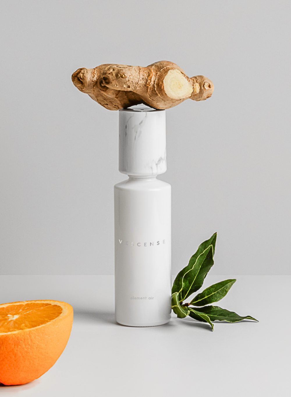 A summery and bright top note from Sweet Orange, followed by the herbal whispers of Bay Laurel. Ginger's warm and spicy scent forms the base note.